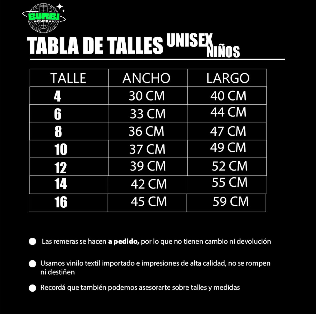 Utilizamos remeras de alta calidad de algodón con excelente calidad y doble costura. No se achican ni deforman, y no pierden el color con los lavados